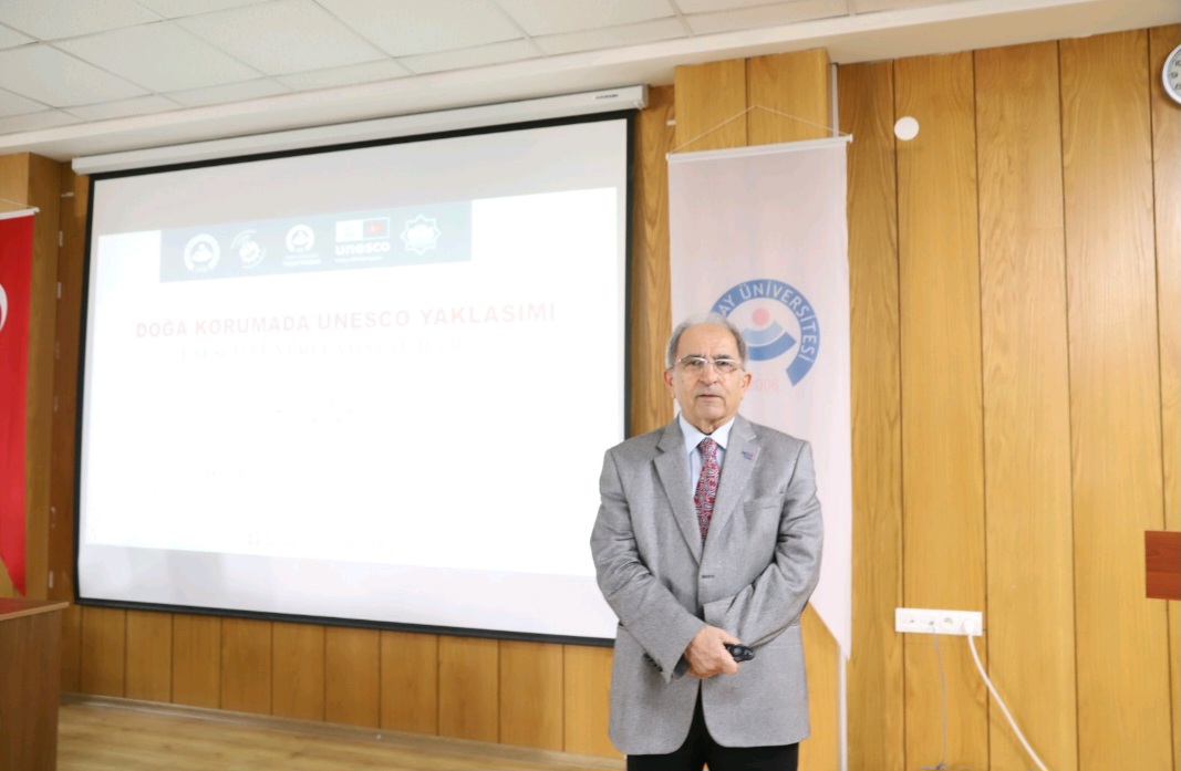 UNESCO Türkiye Milli Komisyonu Başkan Vekili Prof. Dr. Nizamettin Kazancı, konuşmasında küreselleşme sürecinde doğa temelli iş birliklerinin ve yerel aktörlerin rolüne dikkat çekti. UNESCO’nun özel bir konuma sahip olduğunu belirten Kazancı, UNESCO’nun eğitim, bilim, kültür ve iletişimi temel alan “barış evi” anlayışıyla hareket ettiğini söyledi. Prof. Dr. Kazancı, UNESCO’nun zamanla yalnızca devletler arası diplomasiye değil, yerel yönetimlere, üniversitelere ve bireylere yöneldiğini ifade ederek, iklim değişikliği ve çevre sorunlarının bu dönüşümde belirleyici olduğunu söyledi. Uydulardan elde edilen görüntülerle buzulların erimesi ve deniz seviyesinin yükselmesinin somut biçimde ortaya konduğunu hatırlatan Kazancı, küçük ada devletlerinin varoluş mücadelesinin küresel bir sorumluluk doğurduğunu dile getirdi. Doğa korunmadan turizmin sürdürülemeyeceğini vurgulayan Kazancı, turizmin yalnızca ekonomik bir faaliyet değil, insanlar arası iletişimi ve kültürler arası anlayışı güçlendiren bir araç olduğunu söyledi. Bu noktada doğa turizminin, yüksek maliyetler gerektirmeden yerel kalkınmaya katkı sağlayabilecek önemli bir fırsat sunduğunu belirtti. Kapadokya örneği üzerinden değerlendirmelerde bulunan Kazancı, bölgenin yalnızca kültürel değil jeolojik açıdan da büyük bir mirasa sahip olduğunu ifade etti. Prof. Dr. Kazancı, üniversiteler ve yerel yönetimlerin UNESCO programlarına aktif katılımının uluslararasılaşma açısından stratejik önem taşıdığını da sözlerine ekledi.
