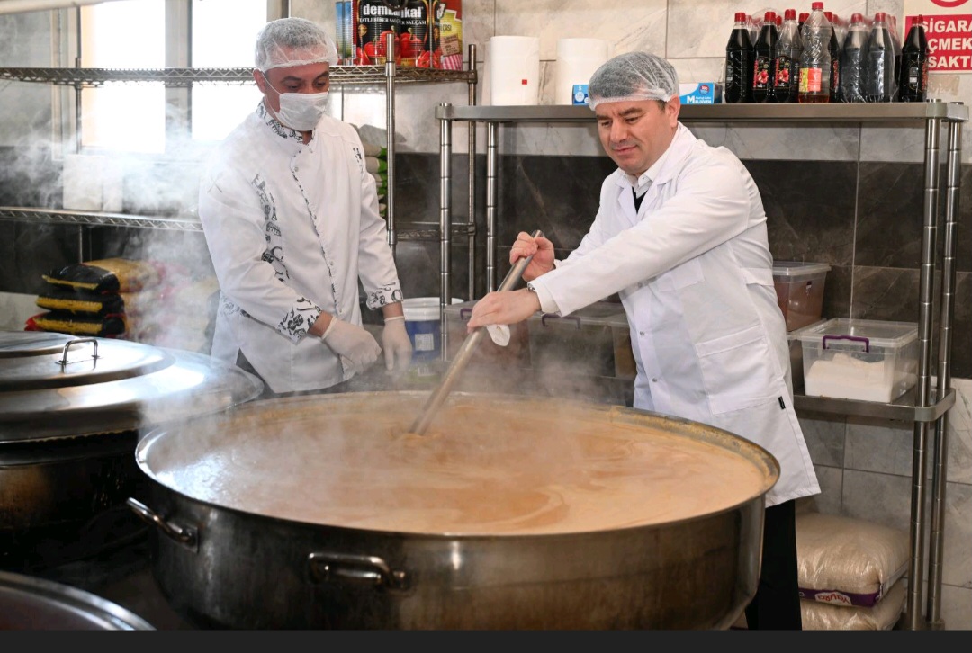 Belediye Başkanı Dinçer, iftar hazırlıklarının yapıldığı mutfağa günlük çalışmalar hakkında bilgi aldı. Önlüğünü giyip dev kazanların başına geçen Başkan Dinçer, kepçeyle binlerce kişilik yemeği karıştırarak hazırlık sürecine bizzat katkıda bulundu. Mutfaktan ayrılırken personellere de kolaylıklar diledi.