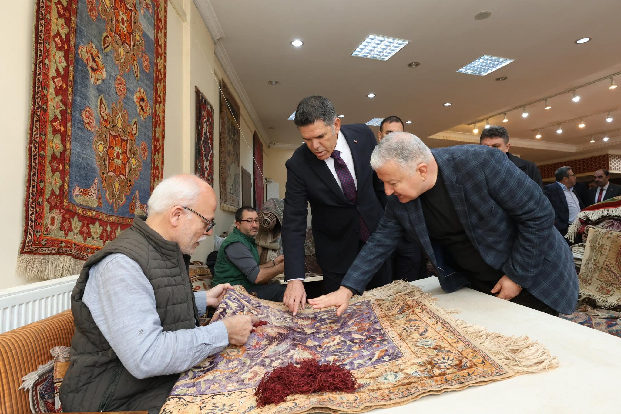 Ayrıca halı dokuma atölyesini ziyaret ederek geleneksel el sanatlarının yaşatılmasına yönelik faaliyetleri inceledi.